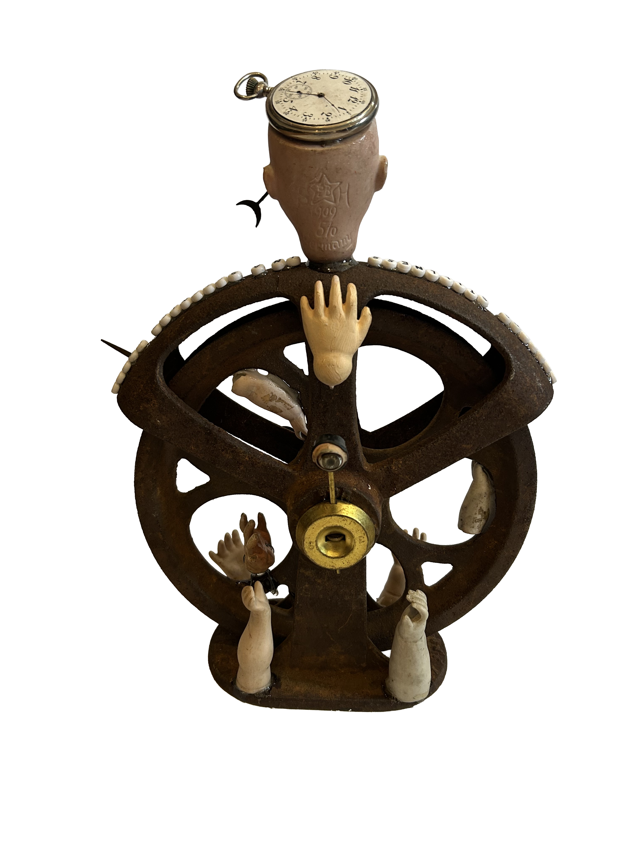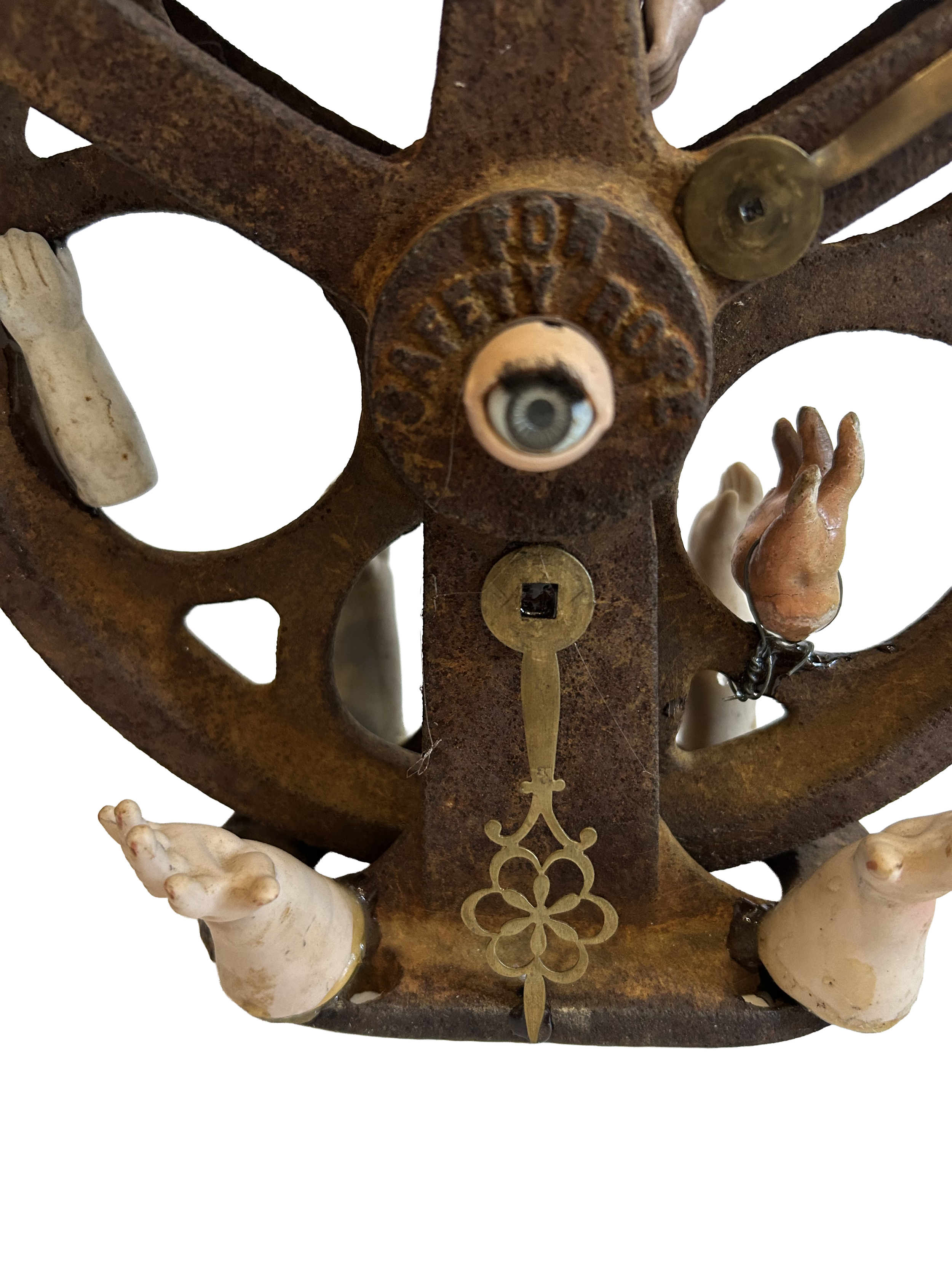 Mixed Media on Pulley - 9.5”x 13” x 5“