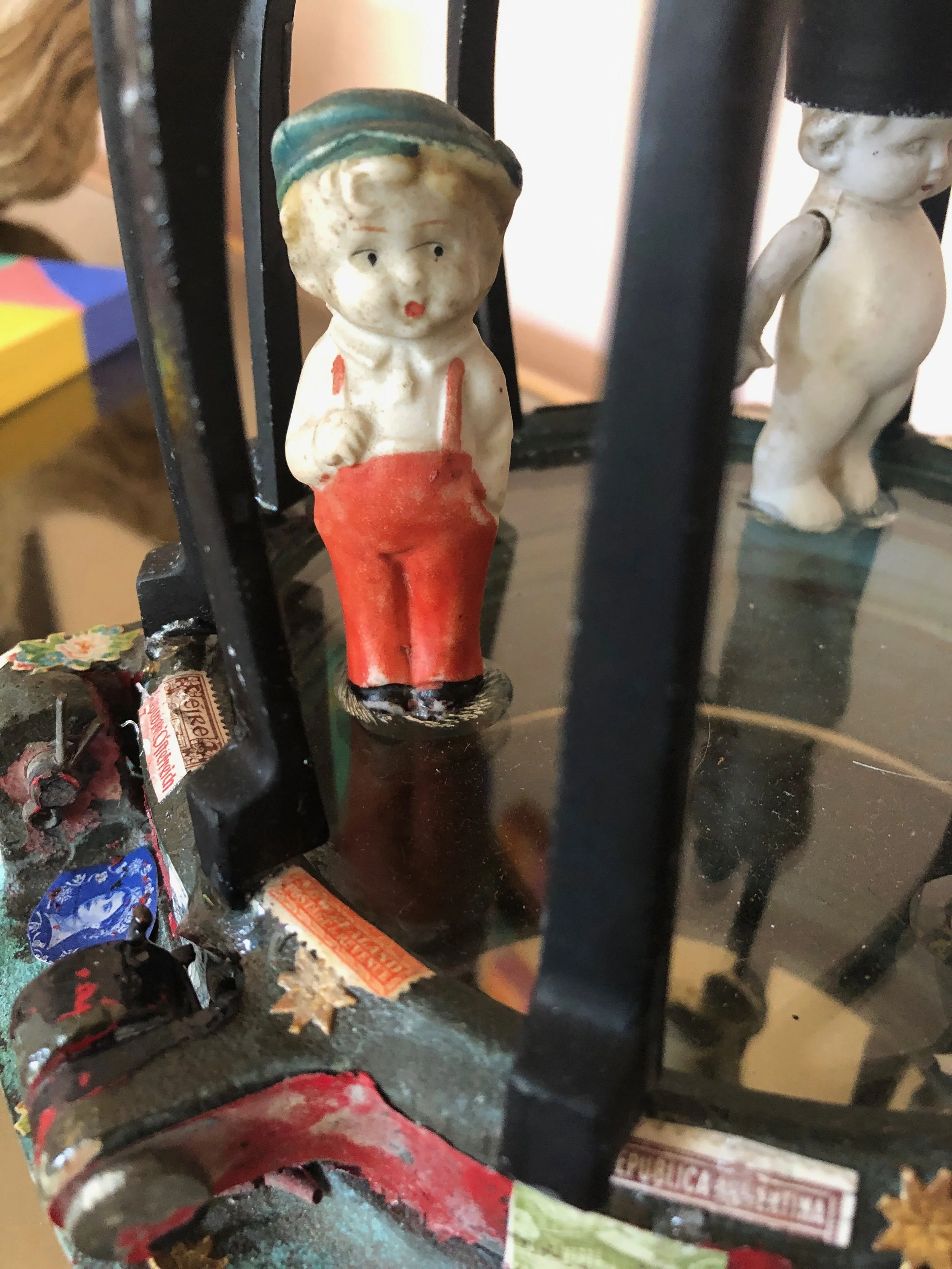 Mixed Media with Porthole, Candelabra and Figures - 10” x 10” x 22”
